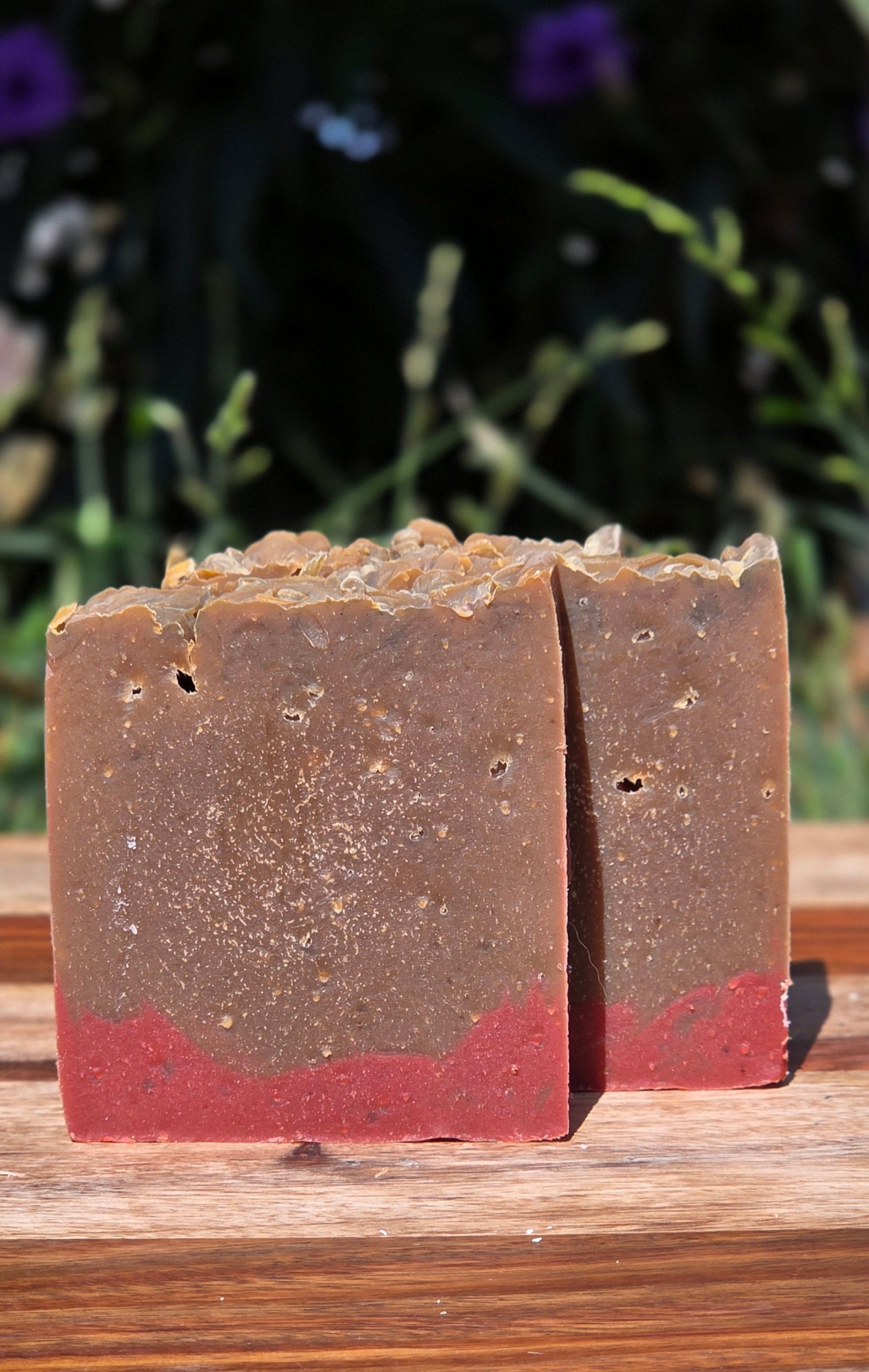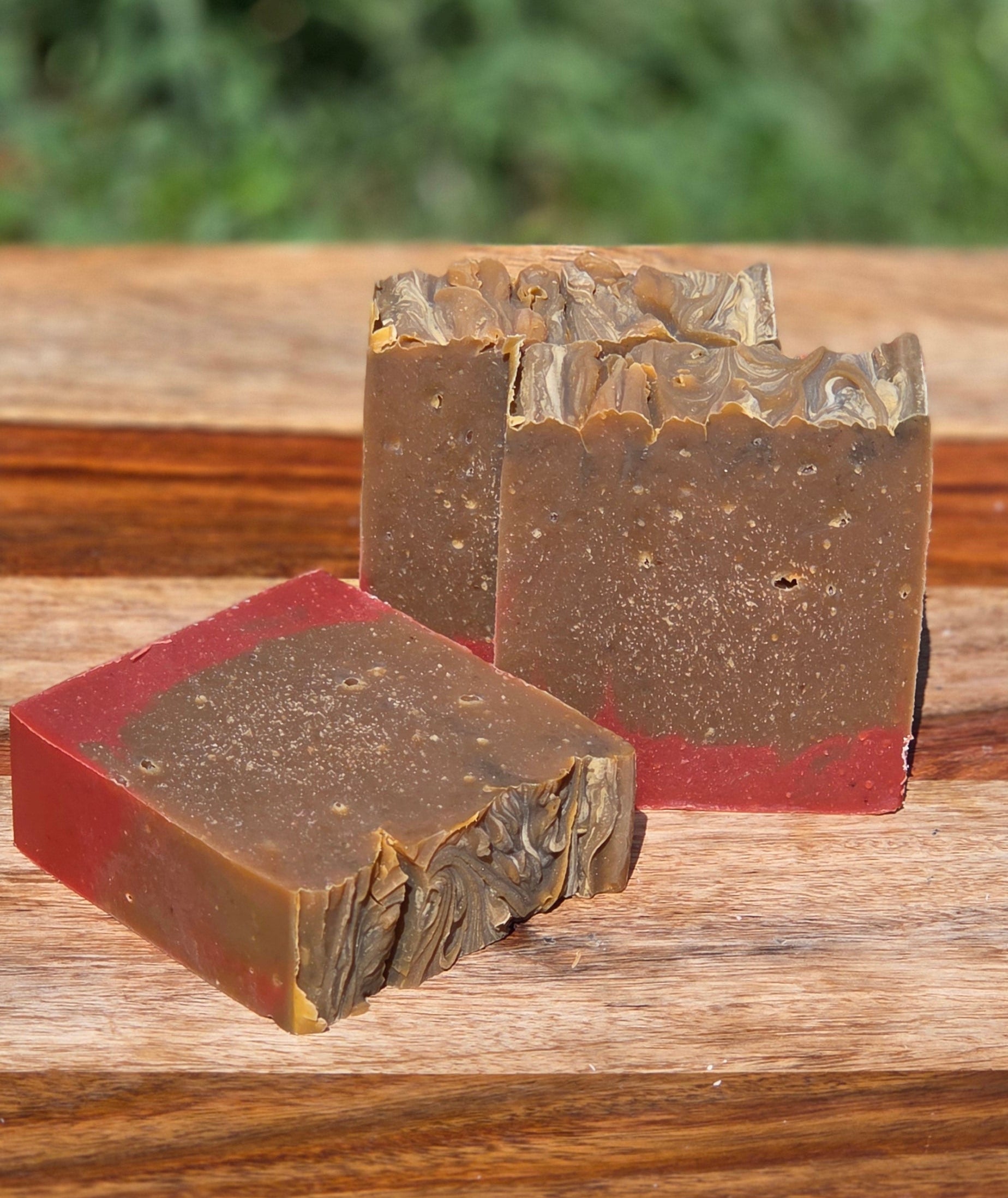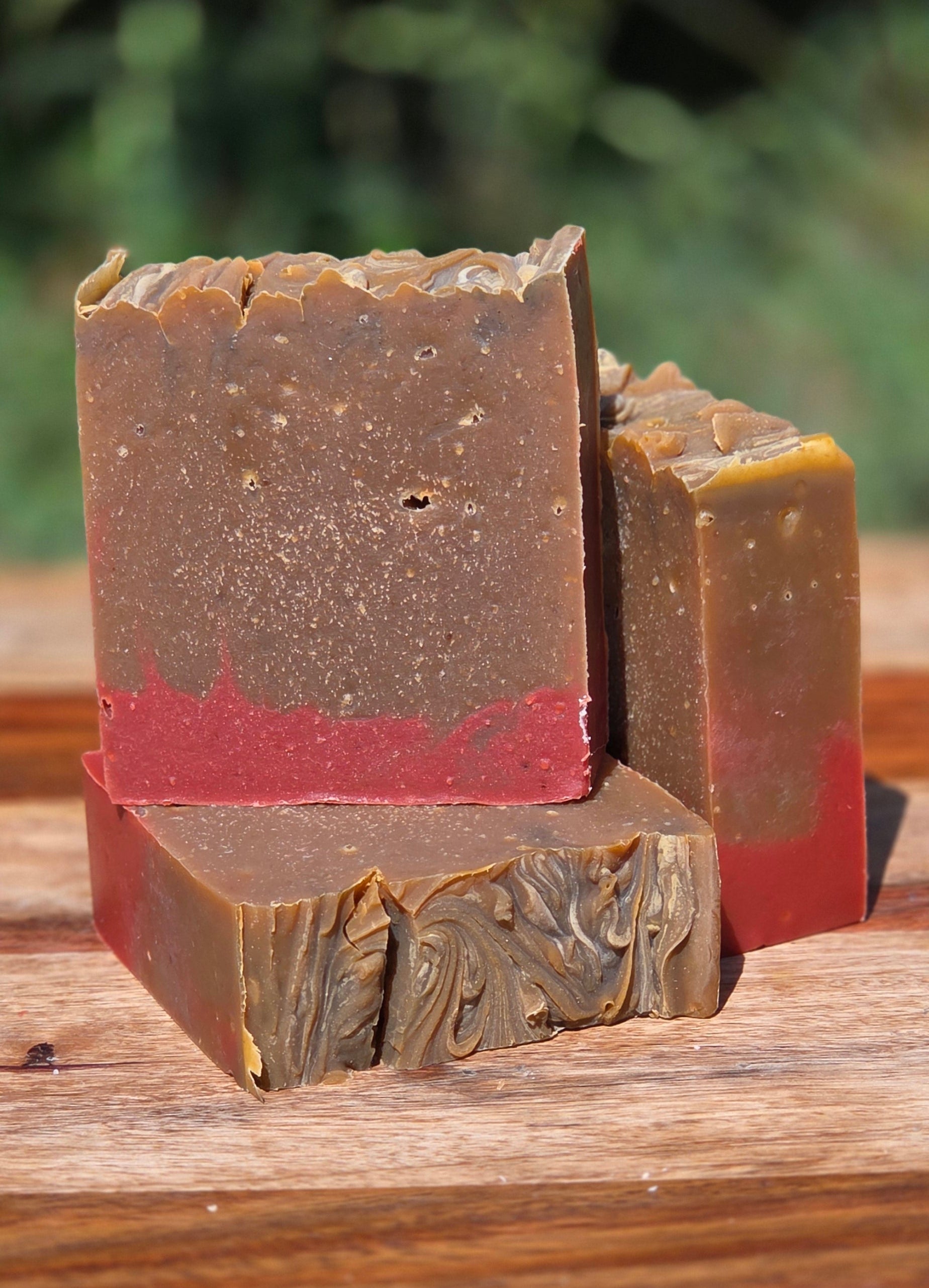 Ingredients: Coconut Oil, Palm Oil, Canola Oil, Olive Oil, Castor Oil, Vitamin E Oil, Lye, Distilled Water, Pumpkin Puree, Greek Yogurt, Colloidal Oatmeal, Kaolin Clay, Sodium Lactate, Indigo Powder, Mica Powder for Color, Bonfire and Scent 74 fragrance Oils (Paraben and Phthalate free).