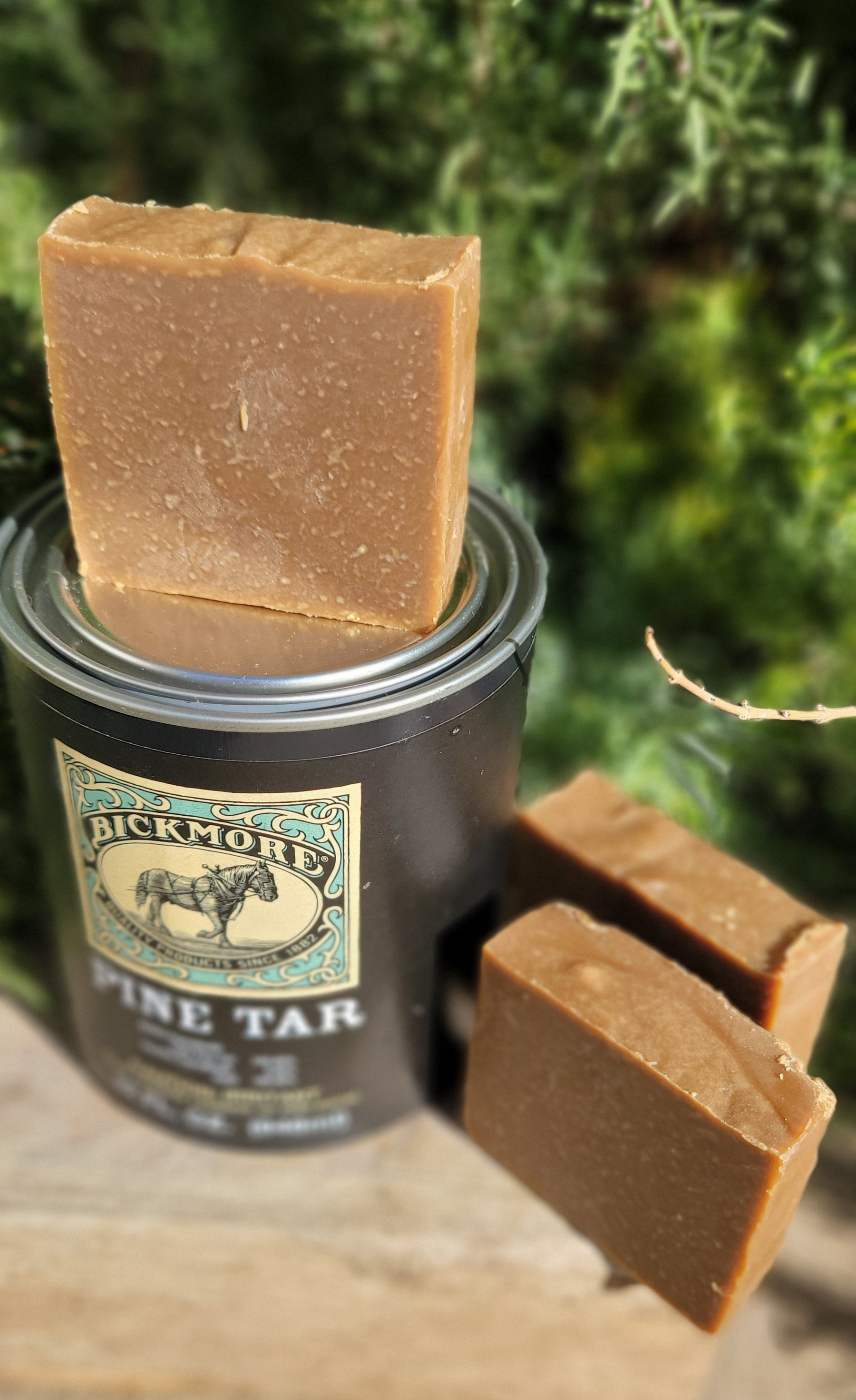 Pine Tar - your skin's secret weapon against poison ivy and oak or poison sumac. This all-natural, handmade soap not only neutralizes irritants, but also provides relief for skin conditions like eczema and psoriasis. Moisturizing and made in small batches. Say goodbye to itchy, irritated skin!