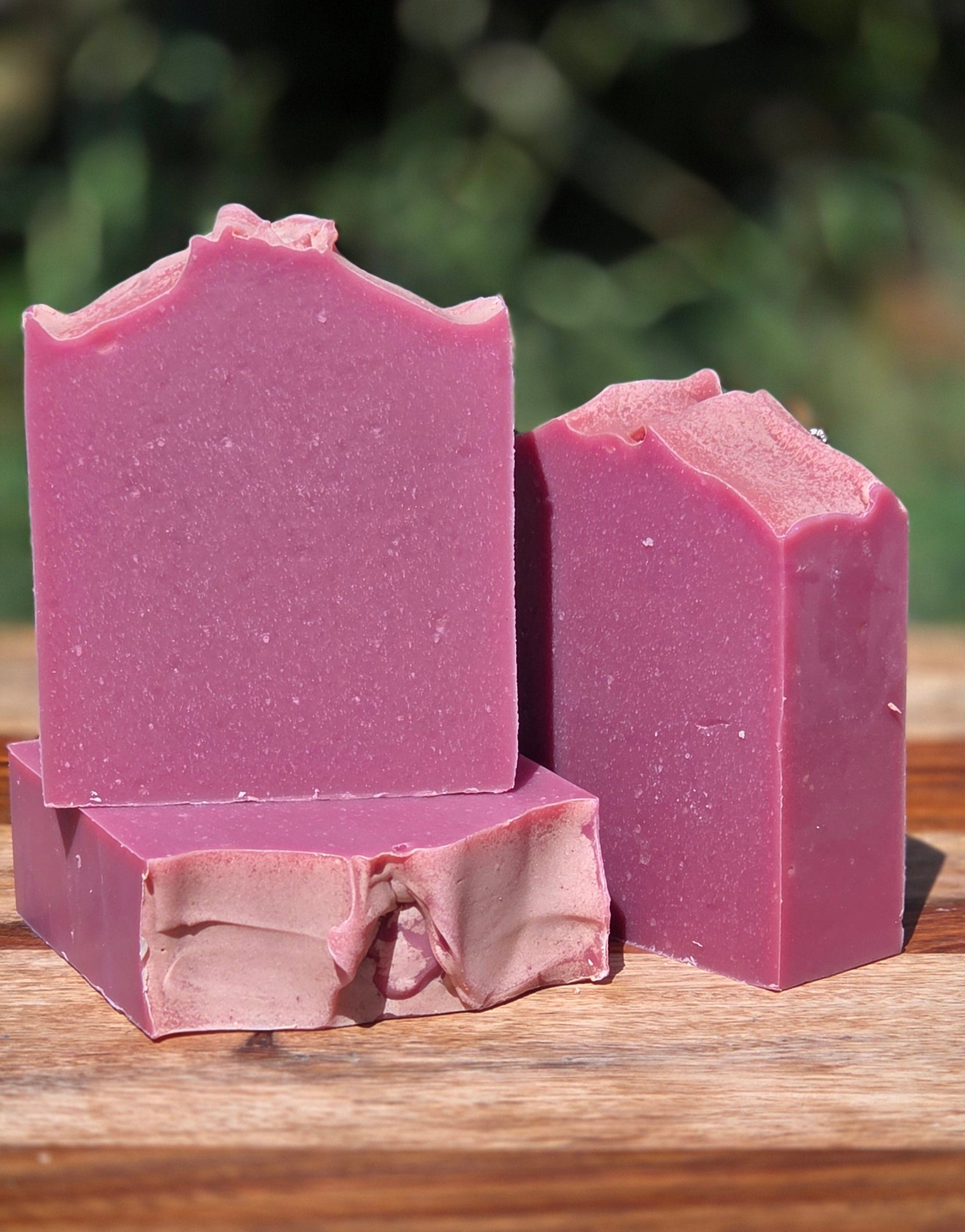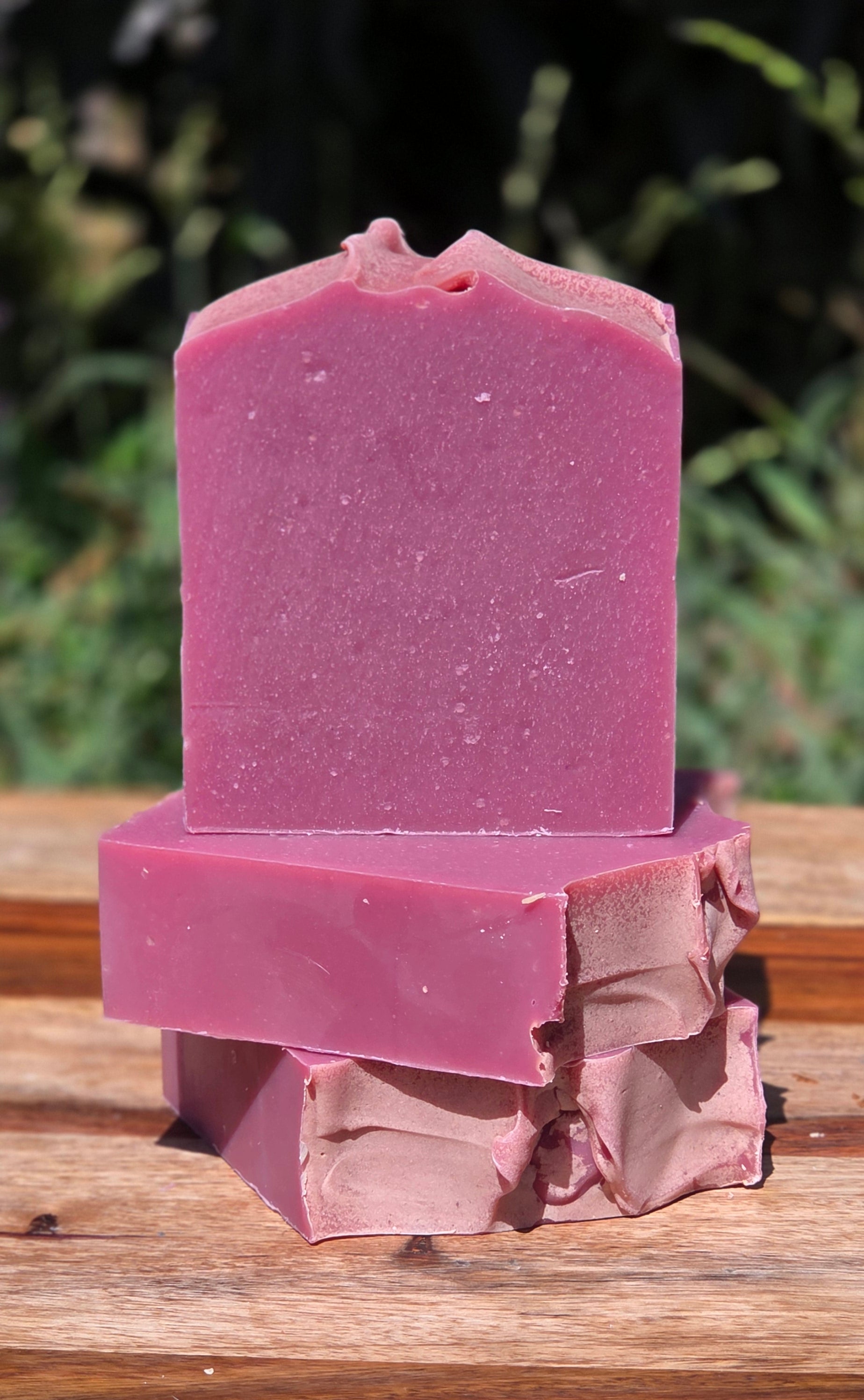Ingredients: Coconut Oil, Tallow, Apricot Kernel Oil, Shea Butter, Castor Oil, Lye, Distilled Water, Aloe Vera Water, Colloidal Oatmeal, Purple Clay, Mica Powder for Color, Sugar Plum fragrance Oil (Paraben and Phthalate free).